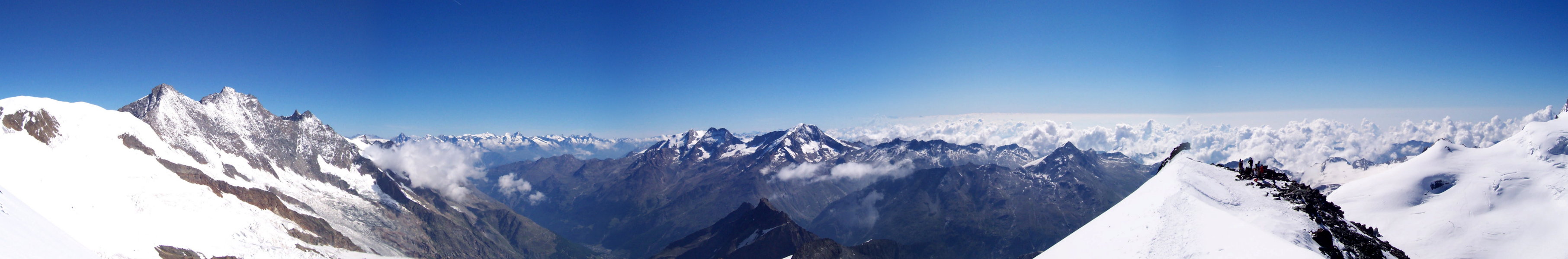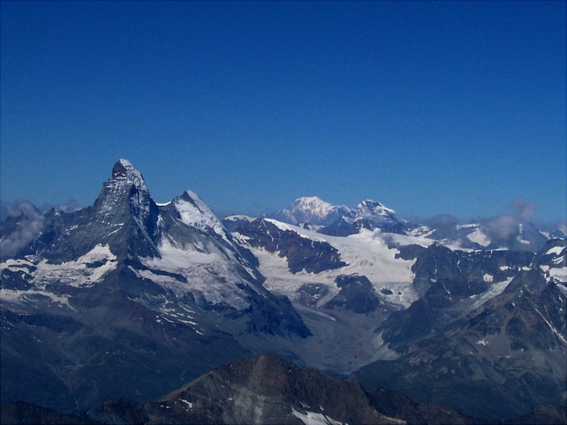 Weisshorn 4.505 m, Matterhorn 4.478 m, Breithorn